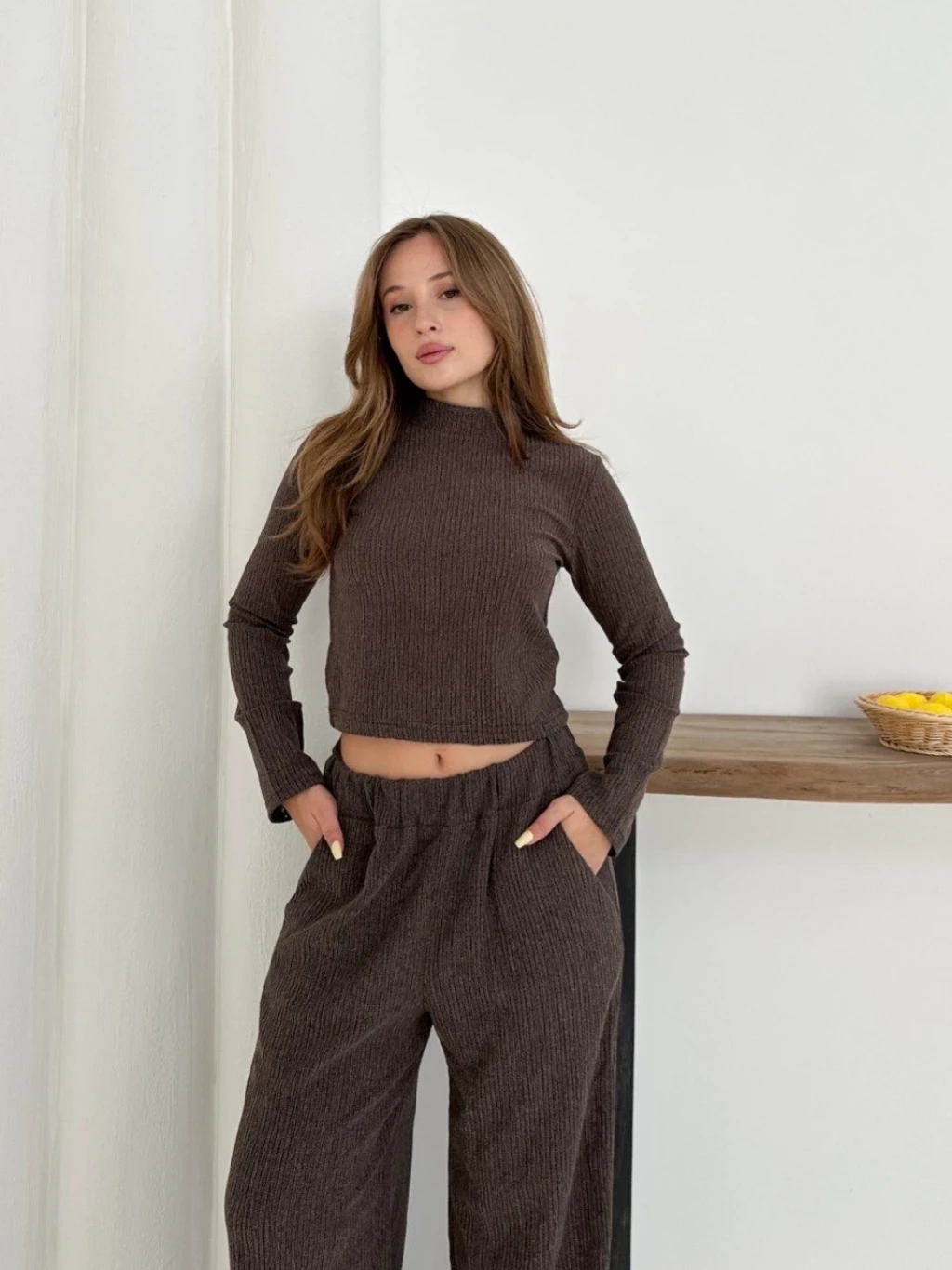 Balıkçı yaka örme takım kahve st265865, hem şıklığı hem de rahatlığı bir arada sunuyor.