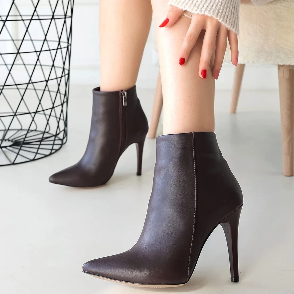 Blan Kahverengi Cilt Topuklu Bot