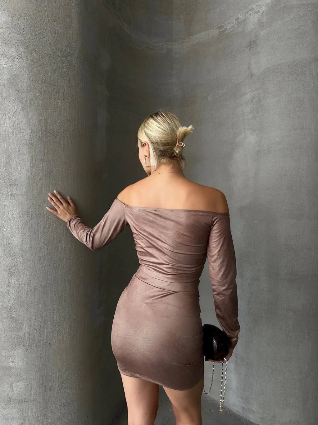Yeni sezonun trendlerini yansıtan şıklığı Buğulu Etek Bluz Takım Kahve S24709 ile keşfedin.