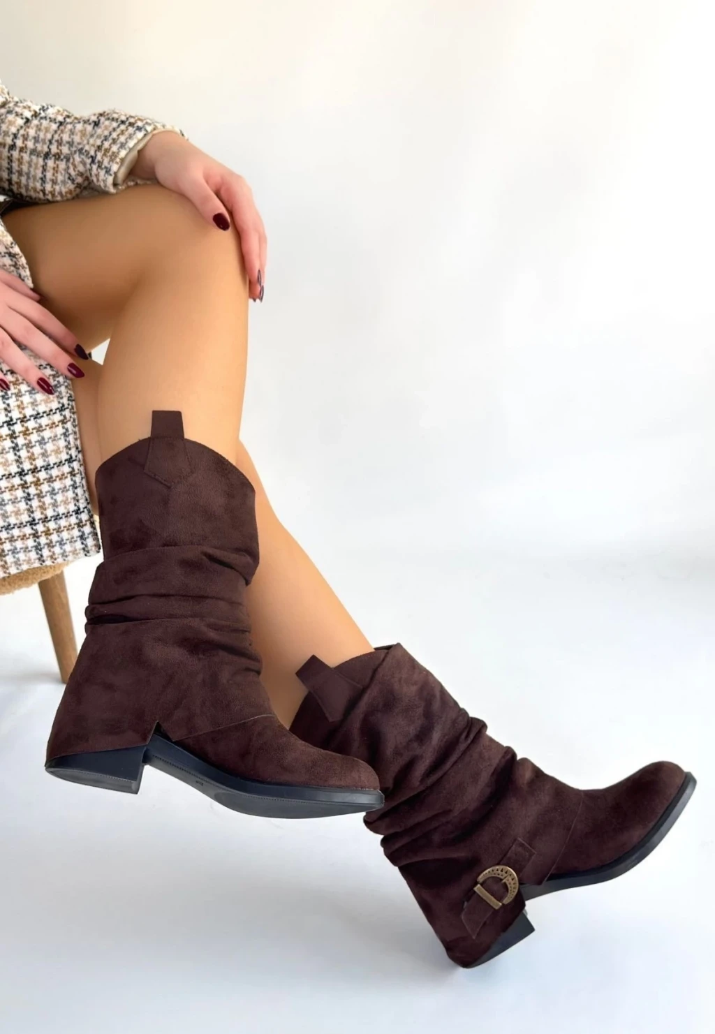 Canty Kahverengi Süet Körüklü Topuklu Çizme