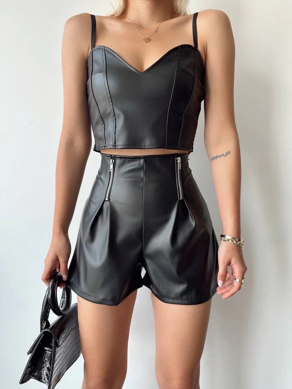 Çift fermuarlı deri şort h24394, günlük hayatta şıklığı ve konforu bir arada arayan kadınların favorisi olmaya aday!