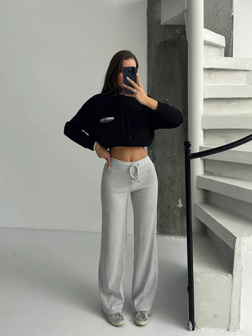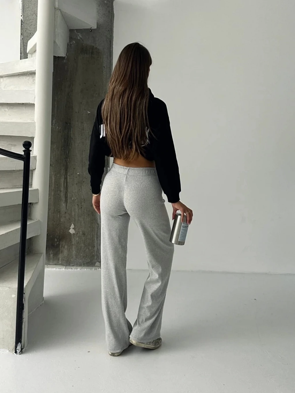 Fit Comfort Gri Salaş Pantolon A6011, kadın giyiminde rahatlığı ve şıklığı bir arada sunar.