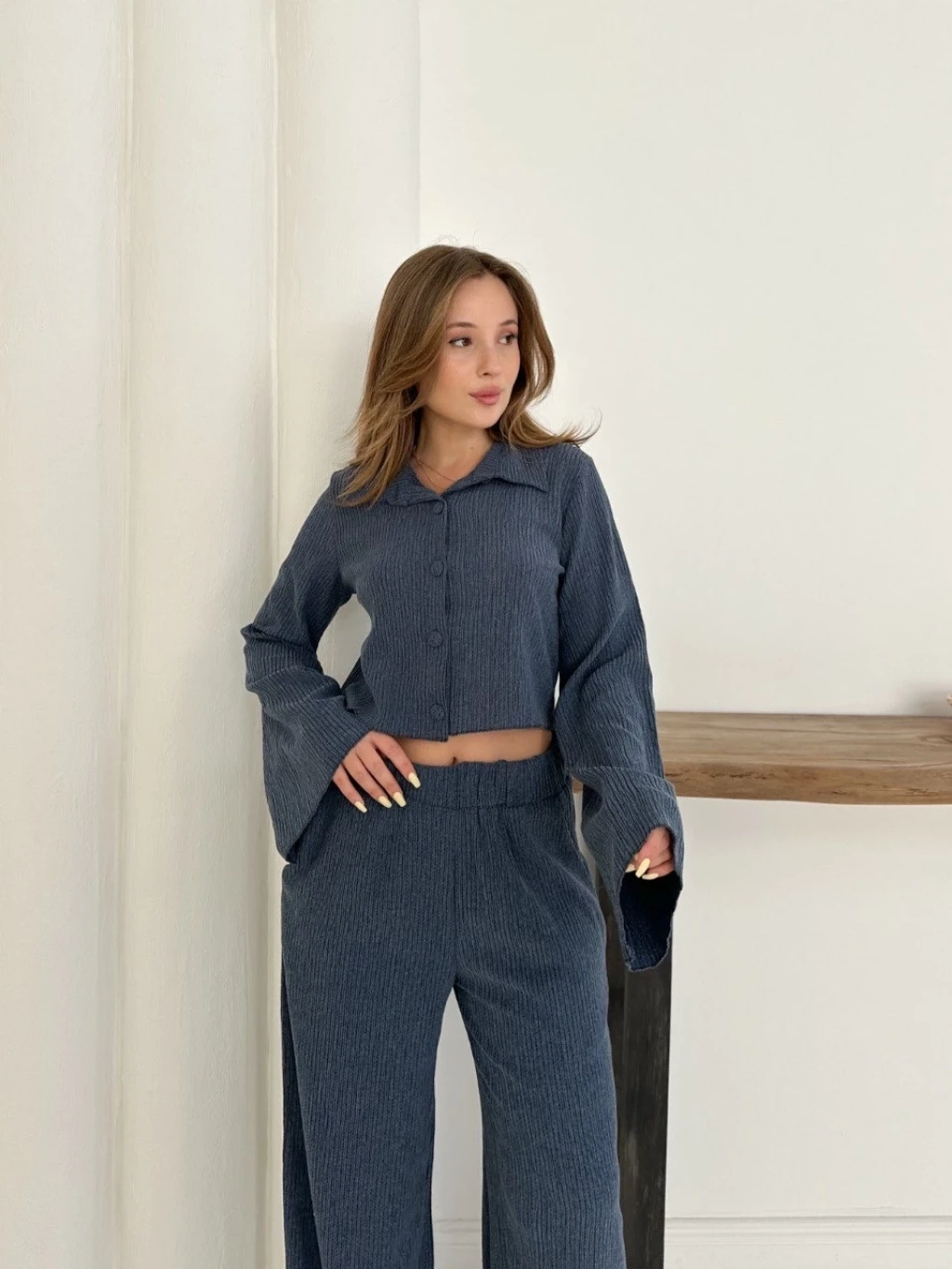 Farklı ve şık bir görünüm için ideal bir seçenek olan Lacivert Gömlek Yaka Kaplama Düğmeli Takım, gardırobunuzun vazgeçilmezi olmaya aday! Hem şıklığı hem de rahatlığı bir arada sunan bu takım, kusursuz bir tarz yaratmanıza yardımcı olacak.