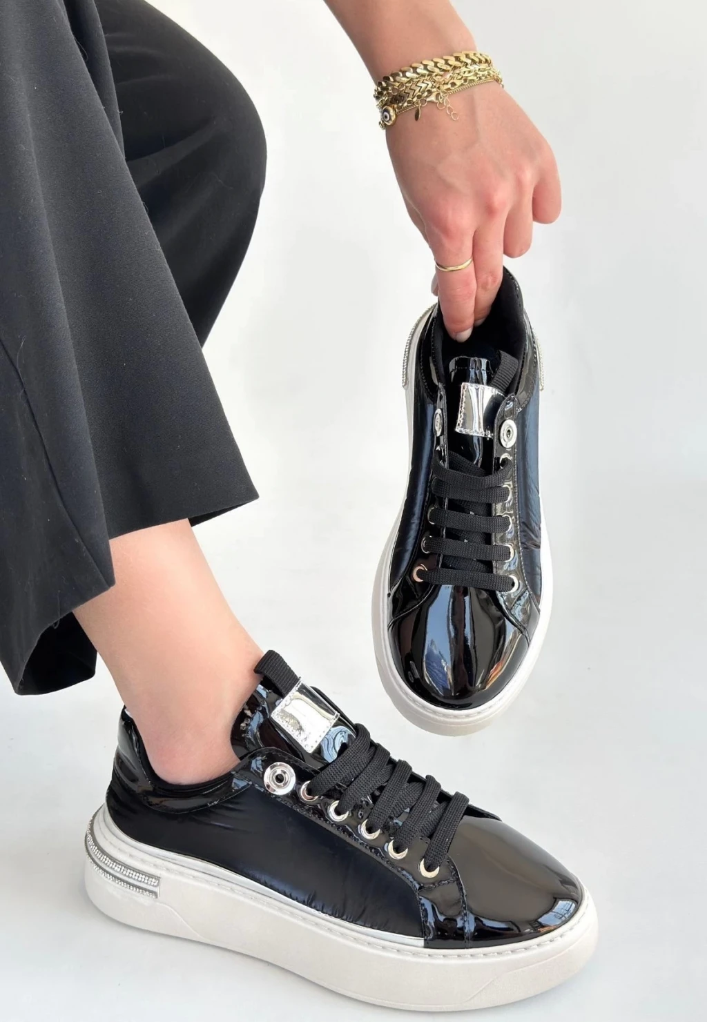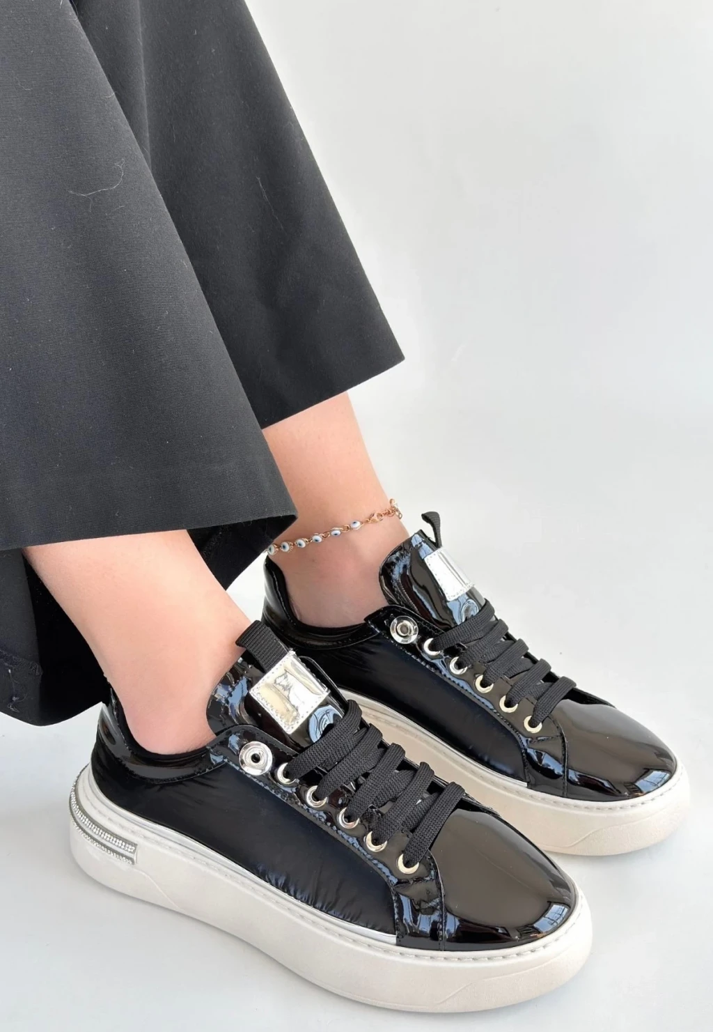 Hley Siyah Rugan Paraşüt Detaylı Bağcıklı Spor Ayakkabı