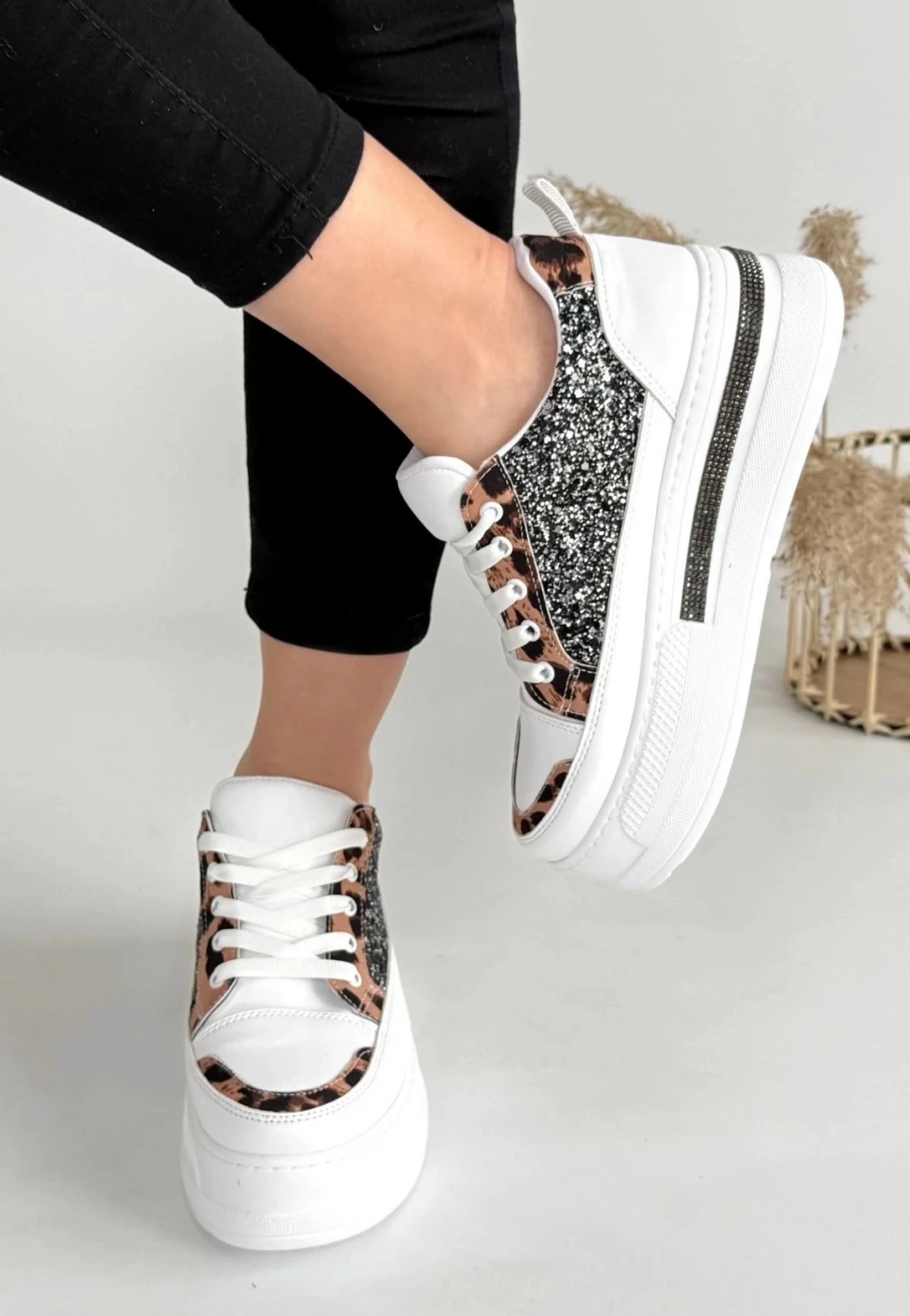 Lawin Beyaz Cilt Siyah Simli Bağcıklı Spor Ayakkabı