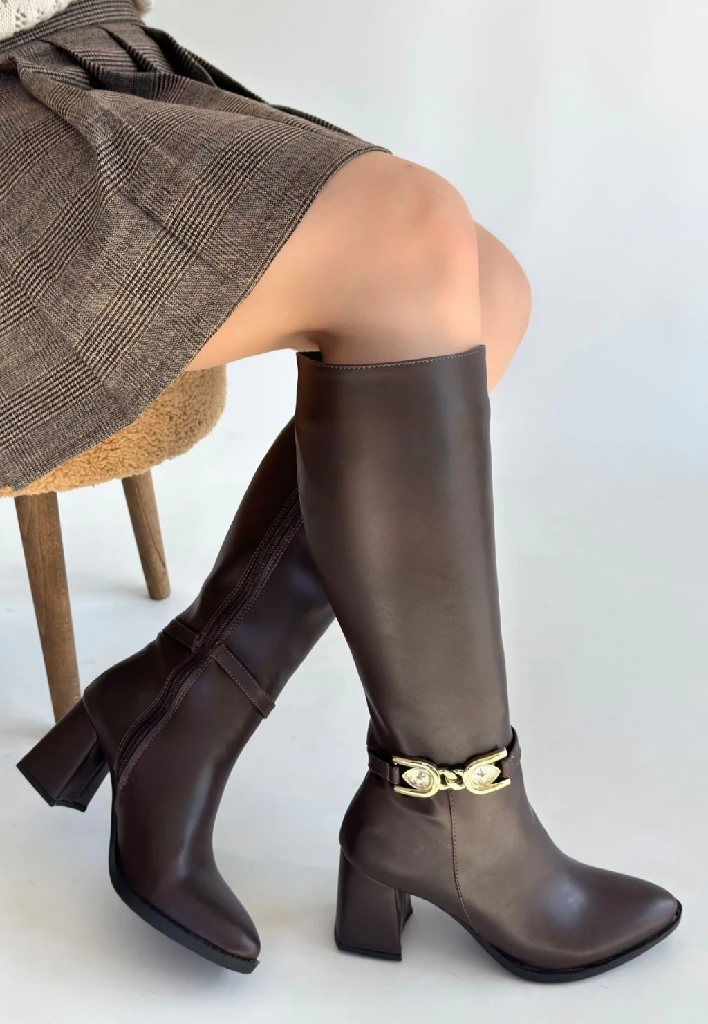 Detay : Topuklu Yandan Fermuarlı Diz Altı Çizme