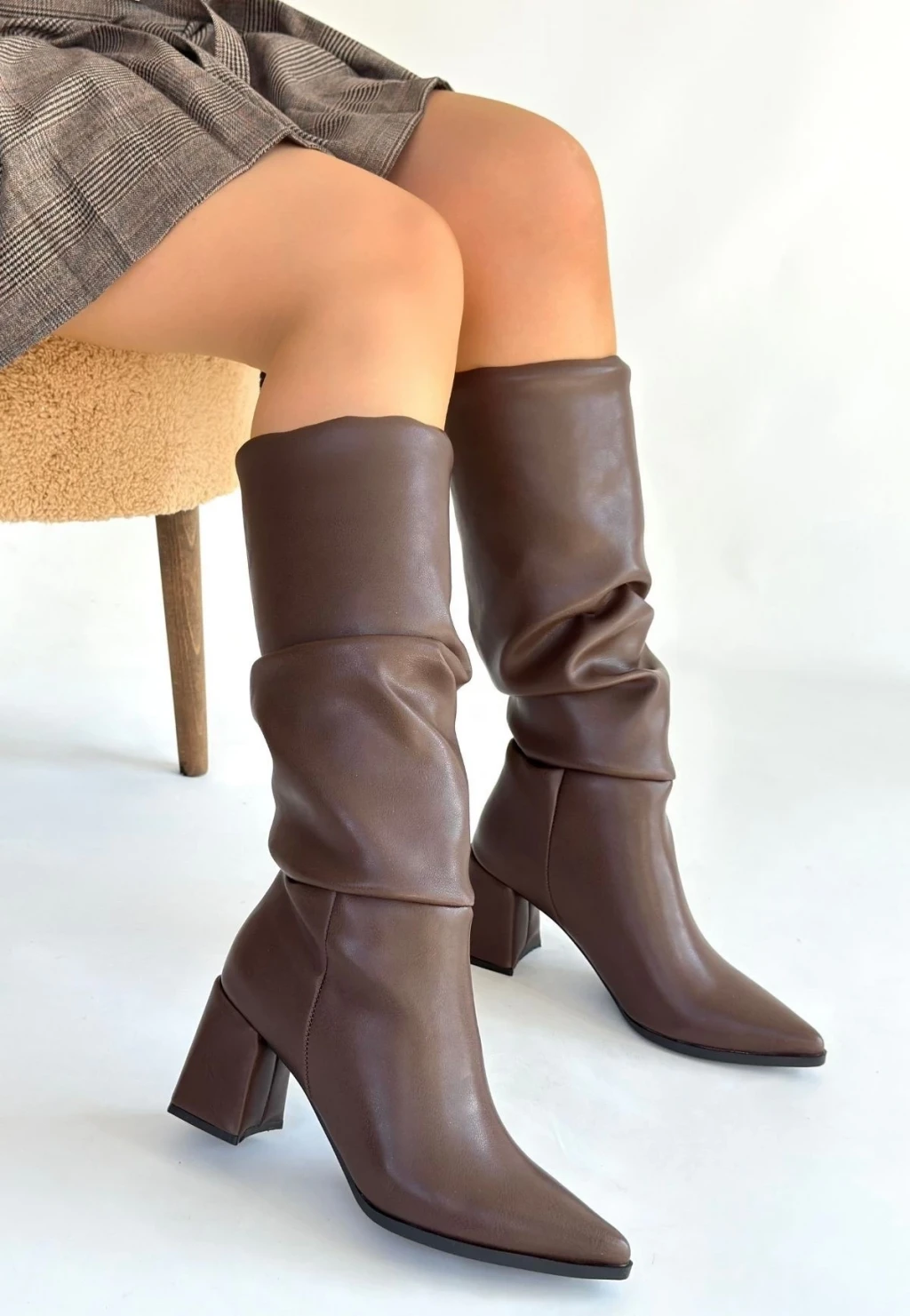Detay: Topuklu Diz Altı Körüklü Çizme