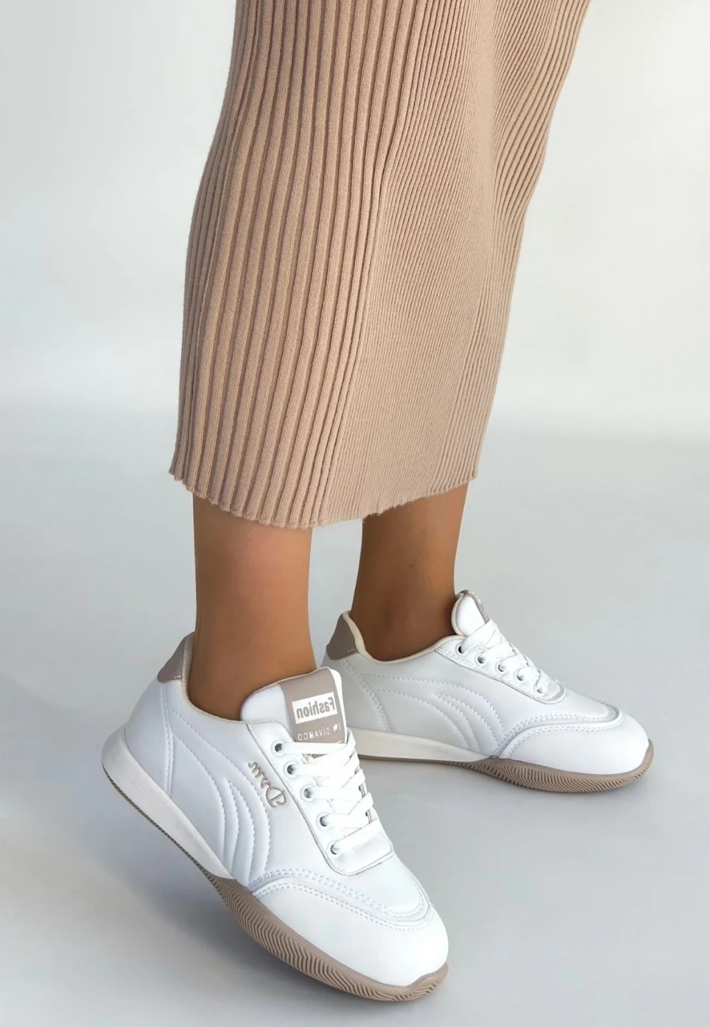 Tawen Beyaz Cilt Bağcıklı Spor Ayakkabı