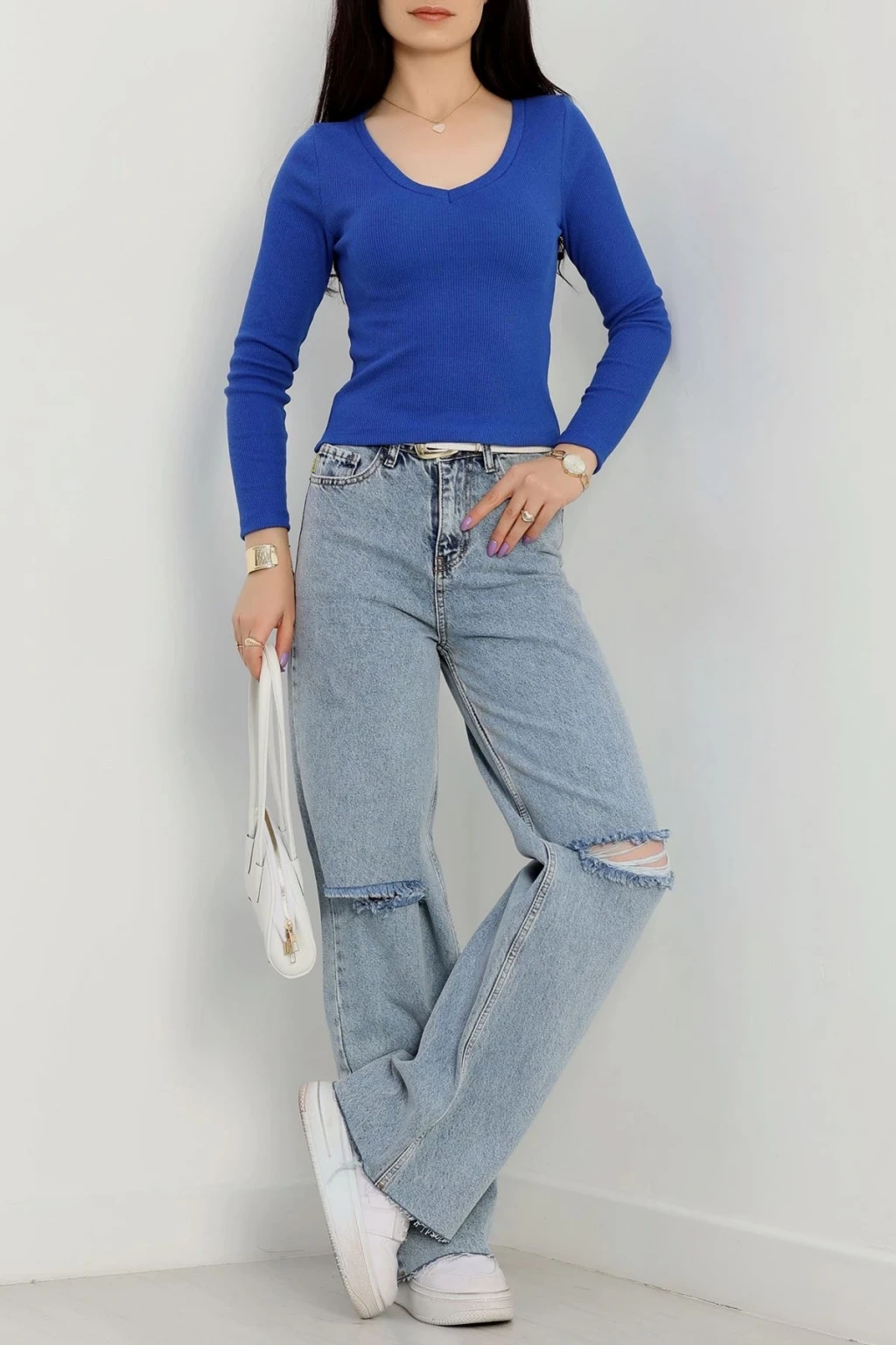 - V yaka kaşkorse detayı ile şık bir görünüm sunar.