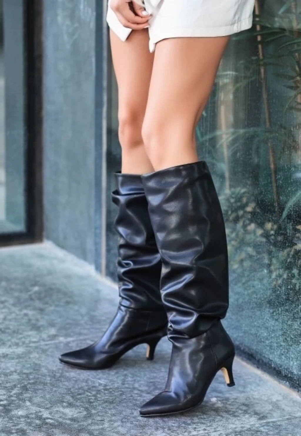 Detay : Topuklu Diz Altı Körüklü Çizme